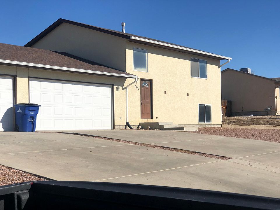 Spacious home in Pueblo West steps away from Desert Sage Elementary. It is a duplex but only the garages are attached. Freshly updated and remodeled. It has 3 bedrooms, 2.5 bathrooms and an oversized 2 car garage. The 3 bedrooms are all large with walk in closets. New carpet in the lower level and new laminate flooring in the upper level. The oversized garage is 29 ft by 20 ft. Fenced in area good for pets. Great mountain views. New windows currently being installed and should be compete by 12/11/2020. Central Air Conditioning. Washer and Dryer hook ups. Pets okay with additional deposit. No smoking. Tenant subject to background screening and credit check. $1,300 per month rent and $1,300 deposit. Tenant pays for all utilities.