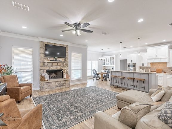Beautiful 4-bedroom, 2-bath brick home located outside the city limits in desirable Wylie West Schools. Step inside to a spacious open-concept living area featuring a stunning stone fireplace, tiled flooring, and seamless flow into the kitchen and dining spaces. The kitchen is a showstopper with a large granite island, corner pantry, induction cooktop, stainless steel appliances, custom cabinetry, and a stylish vent hood, plus a built-in hutch for extra storage and display. The primary suite offers a relaxing retreat with a generous walk-in closet, granite counters, garden tub, and tiled shower. The laundry room is thoughtfully designed with a drying rack, storage closet, and folding counter, while a mud bench provides even more storage options. Outside, enjoy the pergola and spacious patio overlooking the fully fenced backyard—perfect for entertaining. The side-entry garage includes extra storage, a sink, and convenient outside access. This home truly blends function, comfort, and style in a great location with no city taxes.