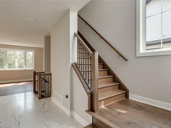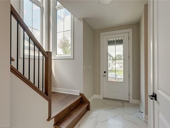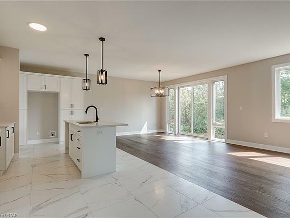 If you are looking for the perfect location for accessing Woodstock, London or the St. Thomas area then check this out! This private subdivision is located just off the 401 in the growing town of Ingersoll. This home is built to a net zero ready standard which means that it is about 80% more efficient than a code built home - think almost NO utility bills! This exclusive subdivision has only 16 homes, is in a secluded area that currently backs onto a golf course on one side and a pond with green space on the other side. Inside, this gorgeous home features a large kitchen with island, quartz countertops throughout, tons of cabinetry and designer light fixtures. The mud room is located between the garage and kitchen so offloading groceries, hiding the kids' mess and staying organized is easy! Upstairs has 3 bedrooms and 2 full bathrooms. The Primary suite has a cathedral ceiling, a dressing room and a bright, beautiful ensuite with a glass walk-in shower. To finish off this beautiful home, the basement is also finished with a large rec room and a 4 piece bathroom, AND it is a walk out, so you have full access to your backyard from the basement. There is a lot of space to be found in this new home and it is hard to believe that it is only offered at $849,000!