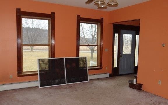 Four bedroom, two and one-half bath Center Hall Colonial located on a quiet country road. Large eat-in kitchen with sliders to back deck. Family room with new carpet. Beautiful solid wood staircase highlight the front entry. Large separate dining room and formal living room round out the first floor. Second floor features four bedrooms, one of which is the Master Suite with full bath. Second floor also features full bath for guests. Partially finished basement with separate entrance from driveway. Bank foreclosure.