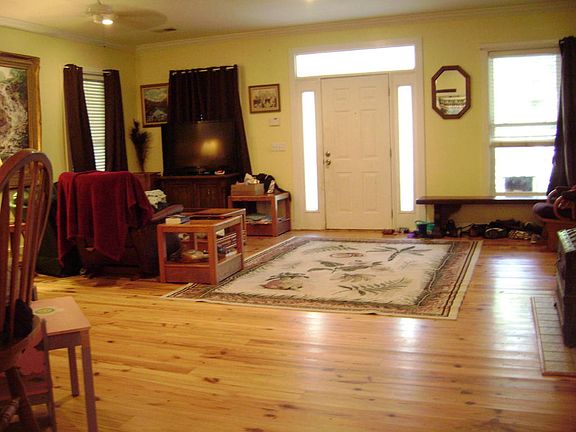Owner offering $15 000 for upgrades at closing or a $15 000 Price Reduction!!! Beautiful Custom Built Home in sought after neighborhood. This home boasts an open floor plan with 9ft ceilings throughout Heart Pine floors and counter-tops. Master bedroom with large walk in-closet huge bathroom with corner Jacuzzi tub and separate double walk-in shower. Other bedrooms are also very large with large closets. Huge Front porch with french doors leading from Master bdrm and from second bdrm which could also be used as an extra den or office. Secluded 1 acre lot with lots of trees and privacy.