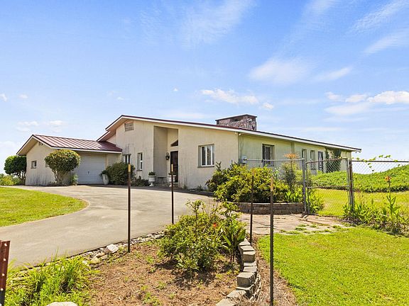 Discover this charming 3-bedroom, 2-bath home built in 1983, offering breathtaking panoramic mountain views on approximately 13.59 acres. Designed by a mechanical engineer, this solidly built home features concrete block walls covered in foam and stucco, ensuring durability and excellent insulation. Recent upgrades include a metal roof installed in August 2022 by Best Buy Metals and a front door and security door installed by Window World in March/April 2024. The property boasts a 40x15 swimming pool with a new liner replaced in June 2024 by Oasis Pools and refurbished steps by Surface Specialist of the Upstate. Step inside a home designed for both function and comfort. The living room and bedrooms boast interior walls inset from the exterior, promoting air circulation from the basement to the rooms and attic. The basement is well-equipped with drains installed in a four-quadrant arrangement, draining to a brown water line in the backyard. It also features cubicles on the south side to facilitate airflow into vents in the sunroom, and a large box fan can draw air into the basement from under the deck for additional circulation. The sunroom has a solid concrete wall acting as a heat sink to capture the sun's warmth, which can be pulled into the attic and circulated by a fan located in the wall of the fireplace into other areas of the house. The HVAC exterior unit was replaced in 2013, with ductwork located in the basement ceiling and discharged into the window seals of each room. The Hicks Water Stove in the basement can circulate warm water through tubing located on the main floor, controlled by individual room thermostats (though the system has never been properly programmed). Connecting the house and metal building, a tunnel features 10” thick walls and a concrete ceiling covered with dirt, plus vents for air circulation. This passage transports firewood and includes three 9’x10’ cubicles for storage, a cold-water sink, and secure locking doors. With the fireplace’s heat exchanger linked to the Hicks Water Stove and the potential for a dumbwaiter, the home combines comfort with practicality. Metal commercial doors provide extra security, while exterior lights operate with wooden push buttons. A hidden DIY alarm system and uninterrupted power from a UPS unit ensure safety and reliability. The pantry features a pass-through to the kitchen counter and easy access to the refrigerator. In contrast, the kitchen offers a pull-out cabinet for baking and a countertop control for the blender. The metal building, with hot/cold water and electricity, includes a large, insulated room with kitchen amenities and swimming pool equipment, and a smaller room with a sink, toilet, and vanity. The septic system has clean-out plugs every fifty feet. Water is plentiful with a 180-foot deep well, a new pump from 2023, and an additional 70-foot hand-dug well with a metal cover. This property seamlessly blends rustic charm with modern conveniences, perfect for farming, livestock, or simply enjoying the serene open space. Don’t miss out on this unique real estate opportunity with stunning views and versatile land. Property sold "as is". Additional acreage is available.