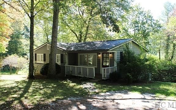 This home is perfect for a family starting out or just for a weekend getaway. Good year round views of Christmas tree field and stream that runs along the back property line. Mature landscaping, shed, and cute play area for children on a cleared and level lot. There is a back deck and a front coverd porch to enjoy. Inside features include tile counter tops, Large window over modern sink, reverse board and batten white paneling, Bathroom has been remodeled with beautiful tile work and jetted tub. Close to Highlands and Cashiers.
