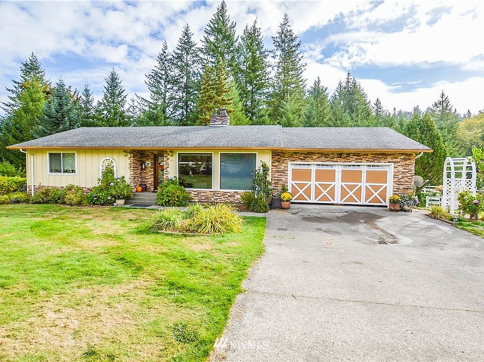This home has it all! Beautiful country estate, great layout, and high end finishes at every turn! Copper farm sink, quartz countertops, gorgeous cabinetry in kitchen. Main floor master with beautiful hardwood floors throughout. Pretty tile fireplace & picture windows. Basement has extra beds, bath, bonus & hobby rooms. Manicured 5 acres with an in-ground heated swimming pool, deck, shop, barn stalls, pasture, arena, fenced fruit tree orchard. There's too much to list, this home is fantastic!