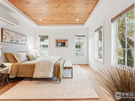 Welcome to a modern sanctuary nestled in the heart of Boulder that will greet you with the tranquility of a high mountain meadow front yard dancing with Silver Maple trees. This beautifully remodeled home offers a perfect blend of modern design, comfort and warmth. Step inside to discover a chef's kitchen that will inspire your culinary creativity, complete with top-of-the-line appliances and sleek finishes. The open-concept living area flows seamlessly, from the dining area to the sitting area. The wall of windows provides an ample amount of natural light. The lush backyard offers a private outdoor space, ideal for gatherings. This main level also includes a meditation/office space, as well as a bedroom. As you head to the upper level, enter into the primary suite where you will wake up each morning to a golden hour glow, offering a serene start to your day. This upper level also includes the laundry room and two additional bedrooms. Additional amenities include a Sunlighten infrared sauna, forced air heating on the main floor and mini splits in each of the upper level bedrooms. Also, enjoy the flex room off the kitchen that can be turned into a garage or be kept as a creative work space. Experience the perfect blend of style and functionality in this exceptional Boulder home.