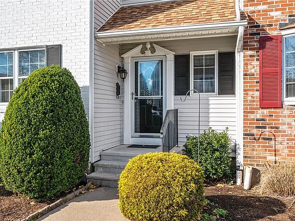 Start packing!! Move in condition townhouse unit in prime spot tucked away in the complex. Bright and sunny eat in kitchen area -- updated maple cabinetry with Corian counters and great tiled floors. Impeccably maintained throughout-- both the lavette and the full bathrooms have been gutted and replaced. Gleaming hardwood floors in the hall and dining room/living room area with newer slider to the cement deck area. Deck overlooks a great natural landscaped back yard area. Upstairs features neutral carpeting---- two huge bedrooms -- both with double closets; Full bath is super sharp and updated. Lower level features a wonderful rec room; a laundry area with stackable front loader machines, and plenty of unfinished storage area; Detached one car garage plus an assigned parking space -- and ample visitors' spots- a wonderful feature for a condo complex. Maple Woods complex features a great outdoor pool area and a community center.