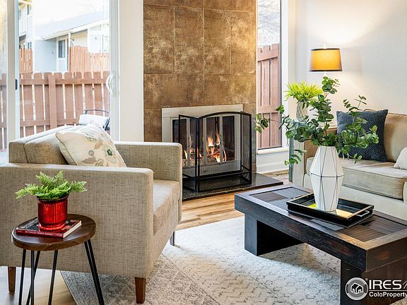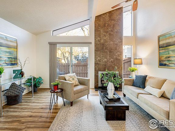 Beautifully updated single-story ground floor ranch corner unit! This interior located home boasts: New paint, carpet, newer windows and sliders, appliances, NEW FURNACE, LVP flooring, upgraded kitchen cabinetry, bathroom with tile shower and floors. Open, vaulted and bright living room with wood fireplace! Expansive 18 x 11 deck and private 11 x 10 off the primary bedroom. Additional storage/cabs in garage. These ranch floor plans rarely come up. We'll kept complex with new exterior paint. Great commuter location close to many amenities , the orchard and open space trails!