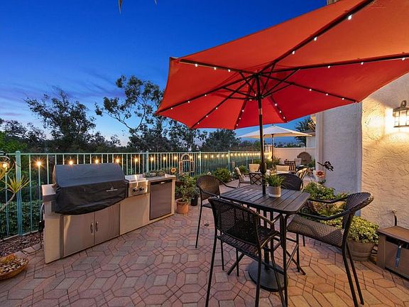 Beautiful, sun-drenched home with sweeping golf course views! Large windows throughout bring in an abundance of natural light, illuminating the open floor plan and upgraded home features. Three spacious bedrooms upstairs and one downstairs (currently used as an office) and multiple spaces offer options for family, work and play. The gorgeous and private yard will also be savored, day or evening. A patio fountain, lights outlining the garden, glass firepit, built-in BBQ, and irrigation on timers, create ambiance as well as simplicity to maintain. Plenty of storage inside, large walk -in closets, as well as a 3-car garage. To top it off this Fairways La Costa home is situated on a cul-de-sac.