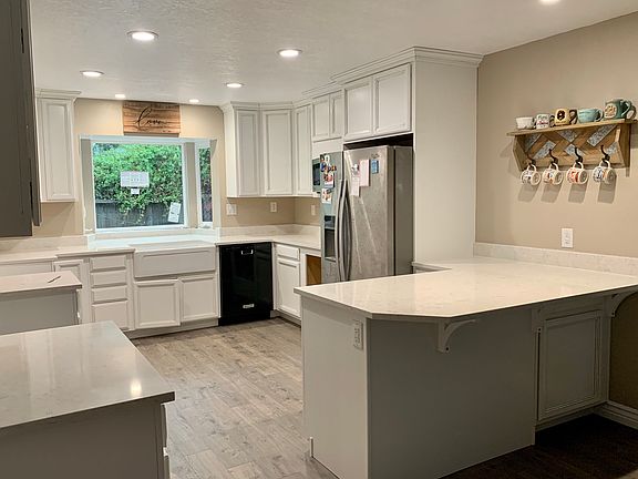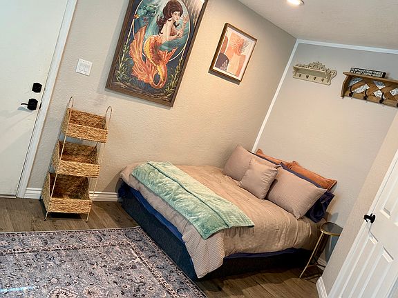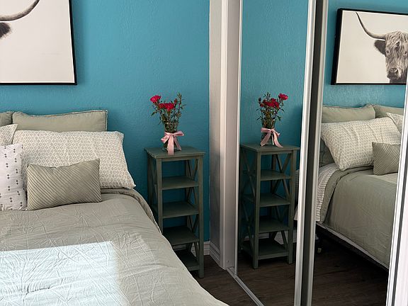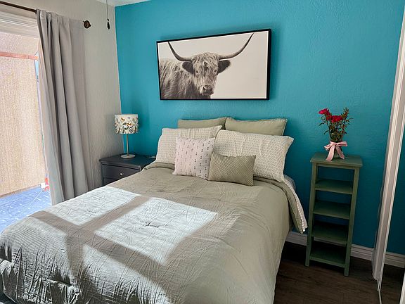 This private residence is a spacious, single-story 5-bedroom home that offers a quiet, relaxed place to settle in. Large Washer & Dryer included with 3 mounted TVs for your downtime. The home includes three full bathrooms, one with a walk-in shower, offering both functionality and comfort. The common areas are warm and welcoming. Newly remodeled kitchen, two ovens, generous counter space, and everything you need to prepare meals. A cozy dining area provides space for both casual meals and working remotely. Laundry is hassle-free with a dedicated laundry room and an extra freezer for storing bulk groceries or prepped meals. Outdoors, the property shines with a front garden featuring mature fruit trees and a lush, green space perfect for relaxing or enjoying a quiet morning. The backyard offers even more room to unwind or garden, making this home a true retreat. Parking is convenient with options in the driveway or right out front on the street. Located in a safe, quiet, and walkable neighborhood, this home is surrounded by friendly neighbors. A grocery store is within walking distance, and five hospitals are nearbyideal for healthcare professionals or anyone who values accessibility. Please note: One small, so pet allowed with pet deposit of $500.