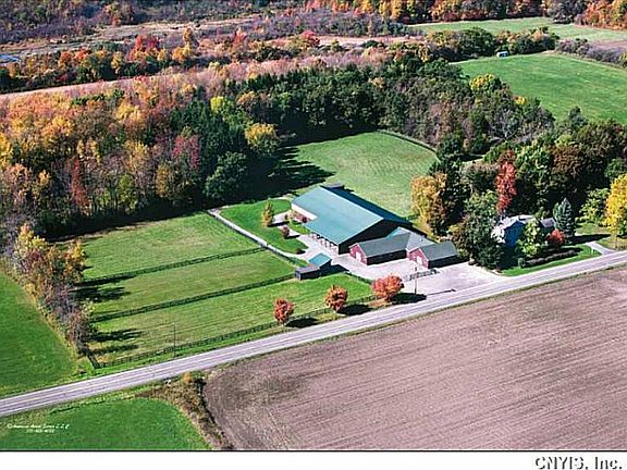 Incredible opportunity to own one of the finest equestrian estates in the area. Now at a reduced price!! The house has been very well-maintained. The setting is fabulous with acres of pasture and woods surrounding the state-of-the-art equine facility. All stalls are matted, heated and have a camera monitoring. Indoor is large with crumb rubber footing. Former Syracuse equine veterinary practice boasts the best of everything. Your horse and your horse lovers want to live here!