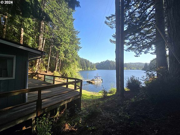 Enjoy unlimited free wifi at this Shutter's Arm Cabin & POTENTIAL FUTURE ROAD ACCESS sits just below the Newest Majestic Shores Development. This 1 level cabin is sitting as close to the water as you can get w/almost 1 acre of usable property & unobstructed views. Close to Downtown & all of the amenities & events. Enjoy beautiful fiery sunsets home is facing due West. Experience a sense of peace & serenity offered by a life surrounded by water. This private haven is storybook perfect. Sunny-side of Ten Mile Lake aka Shutter's Arm OFFERS a perfect blend of tranquility & fun, nestled amidst the breathtaking beauty of lush forest & the soothing sounds of nature. Experience the 10-Mile LAKE Lifestyle & Boat to town-tie up, enjoy a meal & a cocktail, handle your shopping/postal needs! Lakeside is an up & coming little town nestled along the Southern Oregon Coastline. It isn't just for fishermen & water-sport enthusiasts anymore, it's the new hot spot for ATVs & off-road enthusiasts as well! Only Ten Mile Lake offers this sort of one-of-a-kind living-vacationing EXPERIENCE residing on the water. This location on the lake is considered to be most ideal with year around good water levels. It is a short boat ride to Lakeside & arguably one of the most coveted-best fishing arms on the lake. I'm excited to share this remarkable property & this one-of-a-kind lake w/you! Limited product high demand is the only Market we know here on Ten Mile Lake! It is in its own little niche/eco-system promising year around mild weather. Conveniently located near Oregon's longest beach & largest sand dunes. If golf is your thing check out 3 world ranked courses in the Coos County area. Move in ready with New dock/floats, new water pump & pipe, lots of updates. Schedule a tour & come see why everyone is suddenly talking about Lakeside Oregon. Pontoon Boat & all personal property negotiable w/sale.Boat access only close to Lakeside public boat launch.