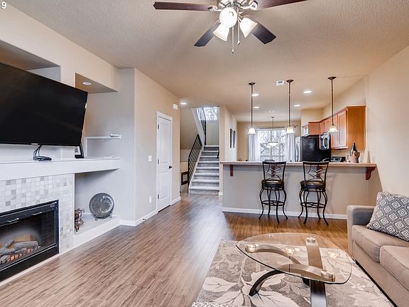 OPEN Sat 4/06 & Sun 4/07 1-4 ; Light filled end-unit townhome! Great room w/ FP & built-ins, kitchen w/ island & breakfast bar. Upstairs, generous master w/ walk-in closet, 2nd bedR & large loft. On lower lvl, a 3rd bedR (no closet) w/ walk-out to patio & fenced backyard. Addnl parking in front of garage. New flooring & paint throughout. Convenient location to Intel & Nike. FHA approved. (Last sale w/ multiple offers; no fault of home)