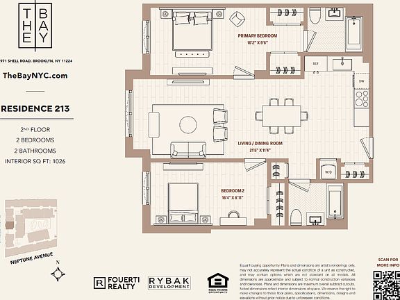 Experience the pinnacle of modern living in our brand new luxury rental building, The Bay, located in the heart of Coney Island, Brooklyn. Our spacious two-bedroom units are designed to cater to diverse lifestyles, offering various layouts and stunning views that elevate your living experience. Each apartment is meticulously crafted with the finest materials and finishes, featuring Scavolini Italian kitchens equipped with high-end paneled appliances. Enjoy the convenience of in-unit washers and dryers, central air and heat, and triple-paned windows that provide both comfort and serenity. With Wi-Fi smart locks, custom window treatments, and thoughtfully designed built-in closets, every unit feels like a true home. At The Bay, we offer more than just luxurious interiors; we provide an indulgent lifestyle within our expansive 40,000 square feet of amenities. Your family will love the dedicated children's play areas, while our serene garden oasis is perfect for relaxation. Pet owners will appreciate the dog run and spa, ensuring your furry friends are well taken care of. Stay fit in our fully equipped fitness studio or engage in friendly competition on the pickleball court. The co-working lounge, featuring private office pods, makes remote work a breeze. Our rooftop lounge invites you to unwind with BBQ grills and cabanas, and the heated saltwater rooftop pool offers a refreshing escape. For added convenience, The Bay also features private garage parking with double stacker spots, EV charging stations, bike storage, and private storage cages. Central laundry facilities with industrial units ensure that laundry day is efficient and easy. Located at 2971 Shell Rd, The Bay places you at the center of Coney Island's vibrant culture. Enjoy close proximity to the beach, local supermarkets, and convenient public transportation options, including subway and bus lines. With an array of dining, entertainment, and outdoor activities nearby, your new home seamlessly connects you to the best that Brooklyn has to offer. Welcome to The Bay, where luxury meets community, and your ideal two-bedroom home awaits.