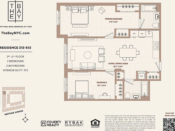 Where Family Life Meets Modern Comfort At The Bay, our two-bedroom apartments are designed for families and couples embracing new beginnings. These thoughtfully crafted homes balance luxury with functionality, offering ample space to grow and thrive in vibrant Coney Island. Kid-Friendly Amenities: Families will appreciate the dedicated outdoor play area and the indoor playroom, perfect for keeping little ones active and engaged year-round. Work and Relaxation Combined: Stay productive with the co-working lounge, featuring private office pods and high-speed Wi-Fi, and unwind on the rooftop lounge, complete with BBQ grills, cabanas, and panoramic views. Active Living: Maintain a healthy lifestyle with access to the state-of-the-art fitness center, Olympic-sized heated saltwater pool, and regulation pickleball court. Elegant Interiors: Scavolini Italian kitchens with high-end appliances, triple-glazed windows, and spa-inspired bathrooms with deep soaking tubs ensure every moment at home is luxurious. Smart and Spacious: In-unit washer/dryers, Wi-Fi smart locks, and custom modular closets offer unparalleled convenience for busy families. Nestled at 2971 Shell Rd, The Bay places you close to Coney Island's iconic boardwalk, top schools, and public transit, offering the perfect balance of excitement and ease. Whether you're working, playing, or simply enjoying time with your loved ones, The Bay is where life's next chapter begins. Welcome home.