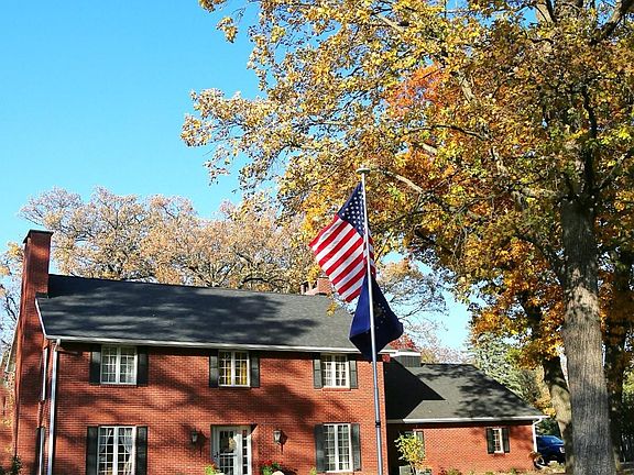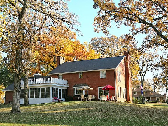 Colonial elegance that checks all the boxes! This 5 bedroom/5 bath home sits on a 1 acre lot adjoining the Cedar Ridge Golf Course. The peaceful, private drive and large, mature trees give you the feeling of country while still able to enjoy the comfort and convenience of city life. Through the front door you are greeted with an open stairway, office/bedroom and a half bath to the right. To the left is a large living room/dining room combo with fireplace. Off of the dining room you will find every cooks dream kitchen featuring a wall of pantry cupboards, open shelving around the stove and a massive island with a hard surface countertop. The kitchen is open to a formal dining room with a 2nd fireplace and custom wood ceiling. After a long day, you can come home to relax on your tastefully redone 3 seasons porch. The new, stained wood floor and ceiling, along with all new windows definitely give it a fresh, welcoming feel. If you don't feel like sitting on the porch, venture down to the bright and cheery finished basement to enjoy a movie or watch the game in your theater. In the theater room you will find a 3/4 bathroom, wet bar, and small fridge for drinks, so you will never have to miss a second of your favorite movie. Upstairs you will find 3 more large bedrooms and a full bathroom with a stackable washer and dryer. At the end of the hall is the primary suite featuring a 3rd fireplace. The oversized primary bathroom offers an elegantly tiled walk in shower, double vanity and 2 walk in closets. The door on the opposite end of the primary bath leads out to a private deck overlooking the backyard and golf course. Don't let this dream home slip away! Schedule your private showing today.