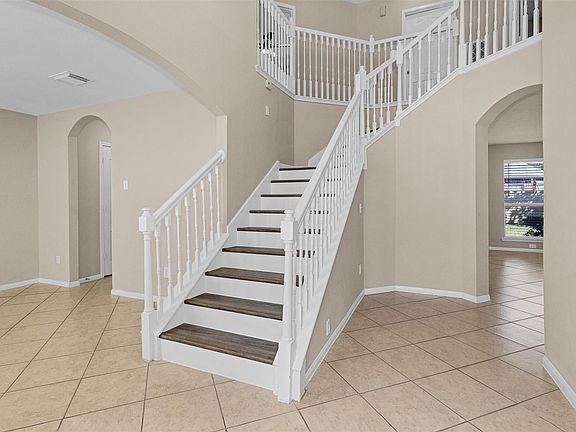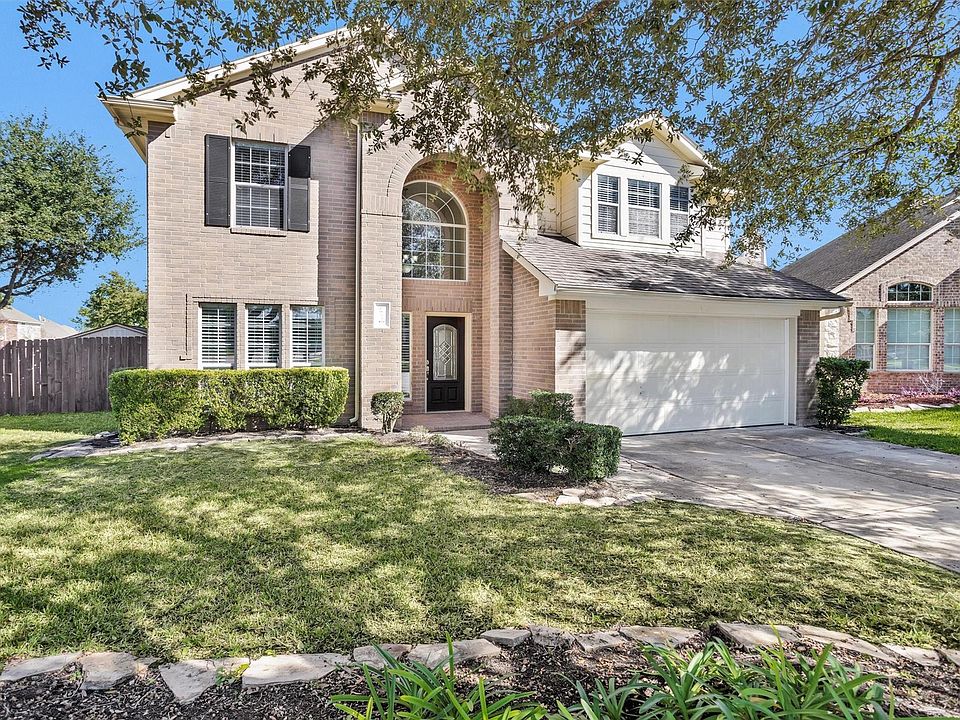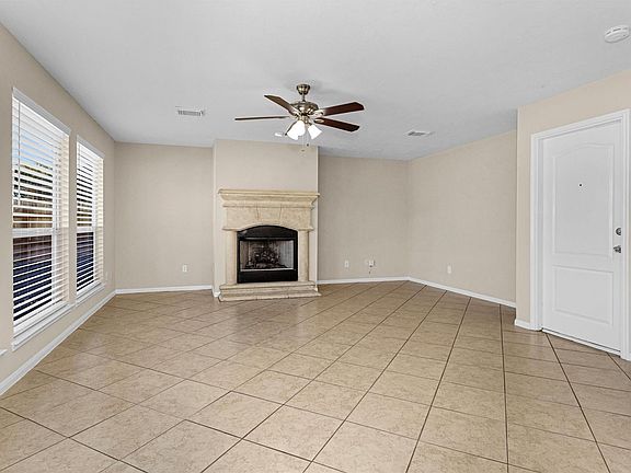 Two-story brick home located in Legends Ranch with convenient access to I-45 and the Grand Parkway. Entry opens to a tiled foyer with staircase and open sightlines to the main living areas. The kitchen features a center island, ample cabinet storage, gas range, built-in microwave, dishwasher, and window over the sink for natural light. Open-concept living and dining areas provide flexible use of space. All bedrooms are located on the second level, including the primary suite with ensuite bath. Upstairs landing provides additional space suitable for a game room, office, or bonus area. Neutral interior finishes throughout. Attached two-car garage and covered front entry. Fenced backyard offers usable green space. Community clubhouse, pool, and park are conveniently located directly across the street. Additional amenities include trails. Convenient to shopping, dining, and major commuter routes. Available for short term or 6 months.