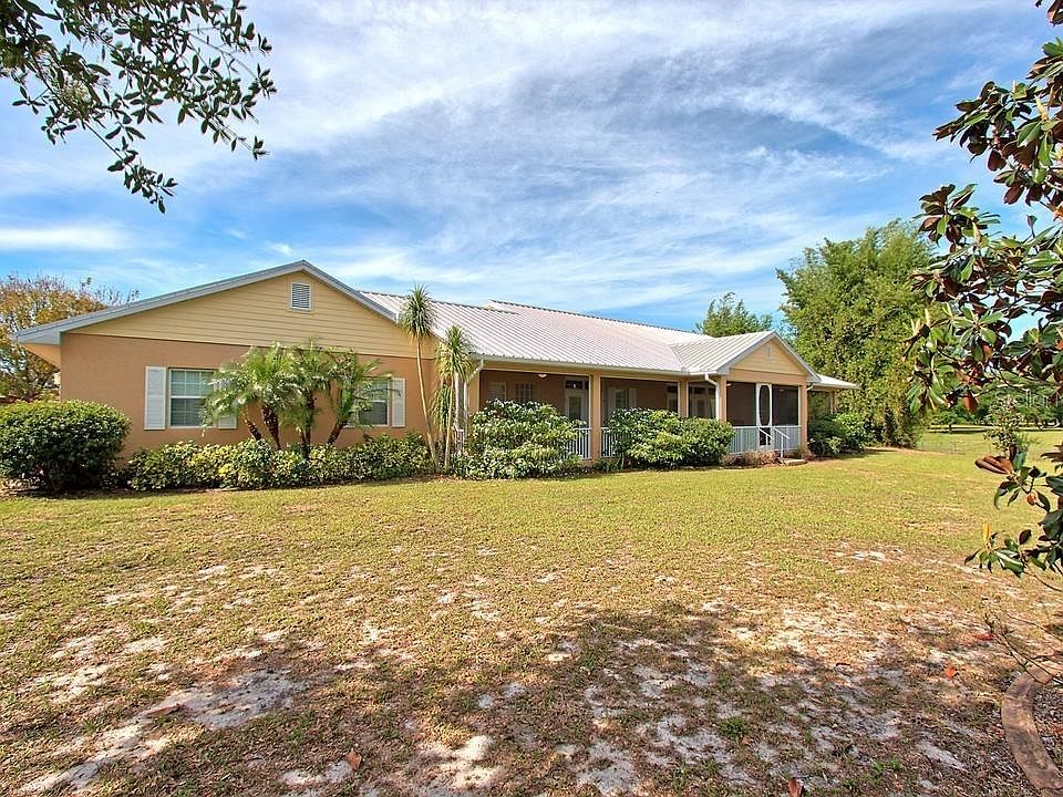 Custom built 3/2 pool home on 5 acres. Sit down and relax on the screened 3/4 wrap around porch with decorative railing and enjoy the view of your stocked pond and mature oak trees. In addition to the over-sized attached 2 stall garage the property has a 24' x 36' shop with a 2 car carport. The entire driveway is paved to the highway (360'). A well house next to the shop houses the water filtration system and water softener. The property is gated, fenced with "no climb" fencing with 2 acres of cleared pasture in back. The screened pool features a heated (electric) spa and has a hand held remote control to operate the pump, lights, spa, and heater. Inside you will find many features such as tray ceilings, granite counter-tops, wood cabinets, wainscoting, central vacuum, generator hook-up. The 220V electric fireplace can heat the entire house and has a beautiful stone look. The attic provides additional storage with plywood flooring and lighting. Property has a high elevation and has had no problem weathering hurricanes.