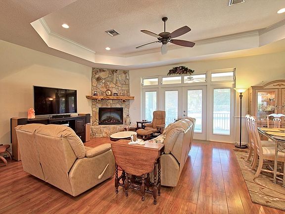 - Ceiling Fans(s), High Ceiling(s), Open Floorplan, Split Bedroom, Stone Counters, Walk-In Closet(s), Crown Molding, Solid Wood Cabinets, Living Room/Dining Room Combo, Central Vaccum, Tray Ceiling(s)