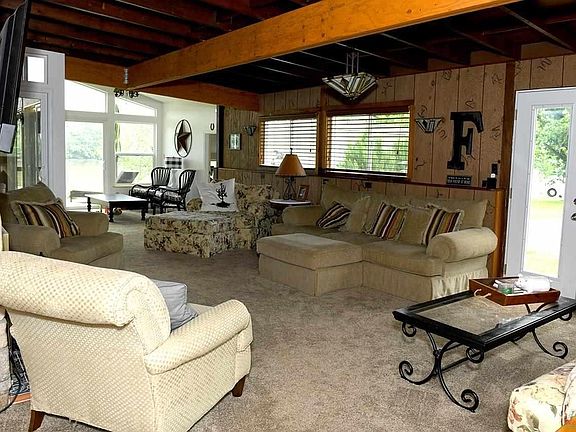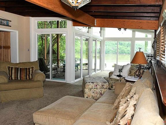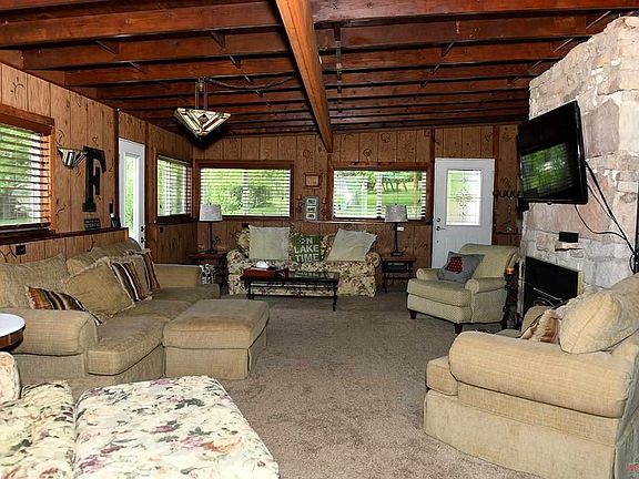 Historic lakefront home and guest cottage lovingly updated! Awesome 3 bedroom, 2 bath home on Lake of the Ozarks situated at a former ferry crossing of the Osage River. Views for miles from every room. Restored house keeps rustic charm updated with modern conveniences, larger windows and an open floor plan with an eye to large family and friends' weekend get-togethers. Gorgeous 30 foot long kitchen and dining area with exposed wood beams has plenty of room to gather around the farmhouse-style table. Large master bedroom with fireplace, wood ceilings, en suite with heated jet bath and direct access to BBQ deck. The century old rock fireplace in large living room has a Lopi wood stove that makes winter evenings cozy. Tons of natural light and amazing view of the lake and wooded hills through the sun room's wall of windows. The second bedroom has four beds with room to bunk them and add more! Third bedroom used as a cute nursery and guest room. Wet bar with fridge leads to huge 32x13 screened porch/party room with dining table, loungers and ceiling fans. BUT WAIT!! That's not all!! Guest house as well!! 600 square foot guest cottage has living room, bedroom, kitchenette and full bath. All of this on 1.2 acres with 285 feet of waterfront and a 2-well covered dock with swim platform. Plenty of room to roam, relax and enjoy the lake! Move-in ready and fully furnished with bedding, table settings, bar ware, outdoor furniture, grill, mowers and more! 2021-08-31