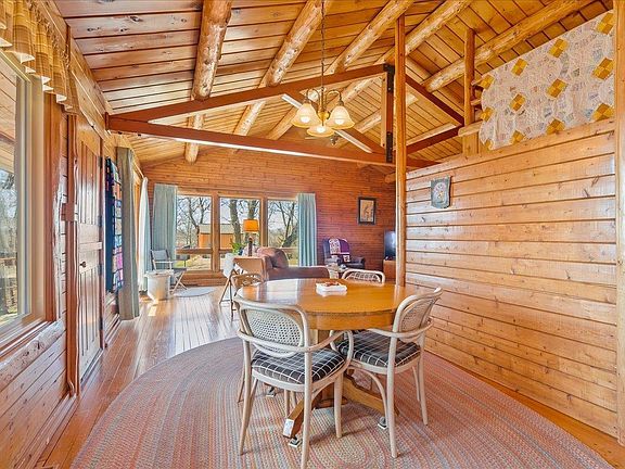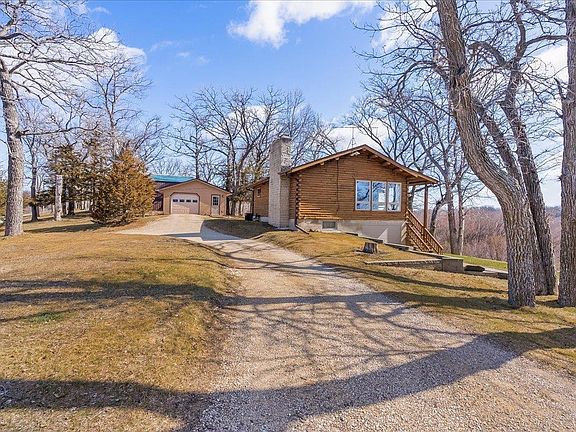 MUST SEE ACREAGE!! This stunning 2 bedroom, 1.25 bath log cabin acreage, is nestled on the bluffs of the Cedar River south of Nashua in Chickasaw county. This wooded 2.58 acres, on hard surface access road off Hwy 218, is 15 minutes from Waverly and 15 minutes from Charles City. Master bedroom, full bath, living room, kitchen, fireplace, and four seasons porch all located on upper main level with large windows and majestic views. Lower level is the 2nd bedroom with a fireplace and large cedar closet. This large closet could be plumbed with a toliet area. Lower level does have a .25 shower and living/rec room that could be transformed into a 3rd bedroom. Lower level is a walkout to ground level with large windows and storage space, as well as laundry area and extra pantry cupboards. Property has a detached single stall garage, as well as another heated oversized single stall steel garage/workshop. Small shed behind workshop is also extra storage. This peaceful acreage enjoys beautiful views of the cedar river valley, various bird species including bald eagles, and other deer and wildlife. It is also close to town that features a lake for boating, fishing and a public golf course. This acreage will not last long so take a look today!!!