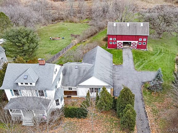 Come see this very spacious and well-built Farmhouse with a 3 story 28' X 45' Barn with endless possibilities! It is currently being used as a Construction Workshop, Storage, and Kids Play area with a Basketball Court and so much room to roam! Barn has 50 AMP sub panel and the top Floor has 6 Skylights, Lighting and Electricity. The home and Barn sit on over 5.6 acres of land affording lots of privacy and potential for growth! A great home in the Skaneateles School District. You will enjoy the many covered porches and patios that surround the exterior of the home. The home has been completely rebuilt by the current owner, a Professional Home Builder! No short cuts were taken and extra care went onto each and every update! Windows, Roof, Siding, new Electrical and Plumbing were all replaced along with the addition of an In-Law Suite+Three Car Garage, Entry area with Mud Room and Laundry Nook. Gorgeous hardwood flooring and doors and trim, throughout. Finished attic in the original house and a finished basement in the new part of the home will allow for so much extra space! The space in this home and barn are never-ending!
