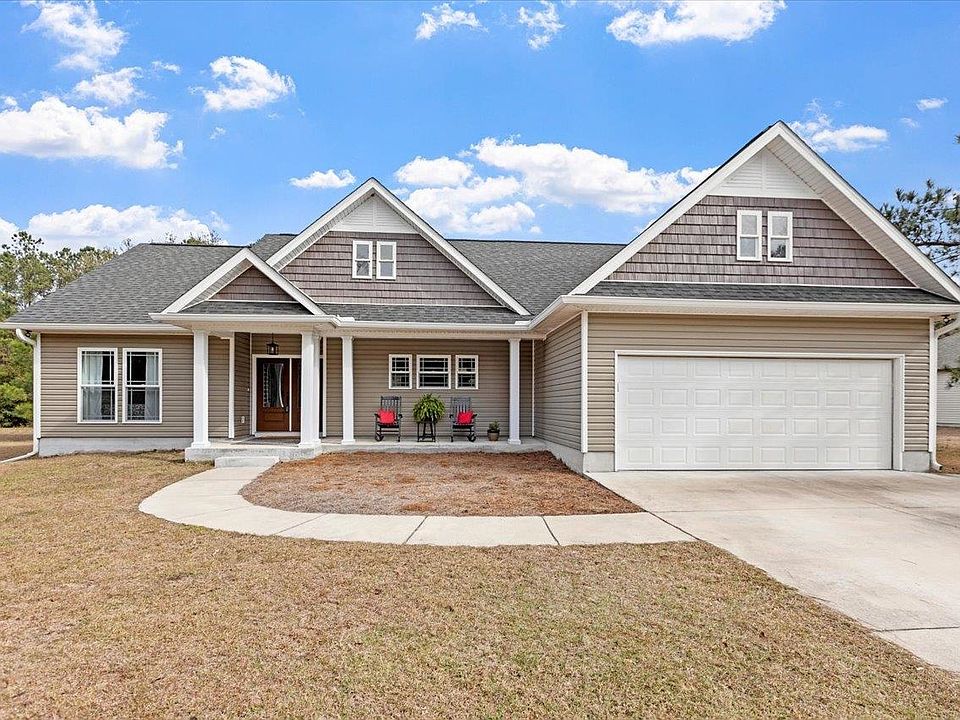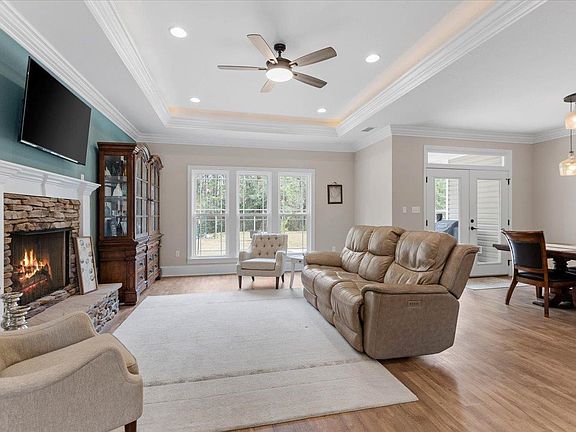What a house!! It has lots and lots of upgrades including granite, floating shelfs in the kitchen, step ceilings with rope lighting in the great room and the master bedroom, entry with double doors, fireplace, and so much more. This home has a split floorplan with a huge Master Bedroom and closet, large kitchen with an island, covered porch, fenced in yard large 2 car garage, over $15,000 in sheds with power that stay and so much more.