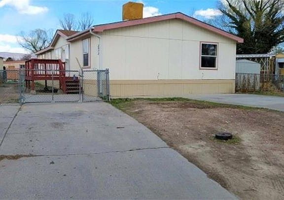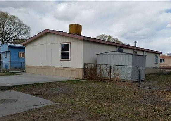 Newly remodeled trailer in a nice location! Spacious 3 bedrooms PLUS office. Large, open living space and kitchen. All kitchen appliances stay! Attractive laminate wood flooring throughout the whole house. Garden soaker tub in master bath. Fenced yard with outdoor storage shed included! Two poured concrete driveways in front; plenty of off-street car RV parking! Own your own land; no lot fee!