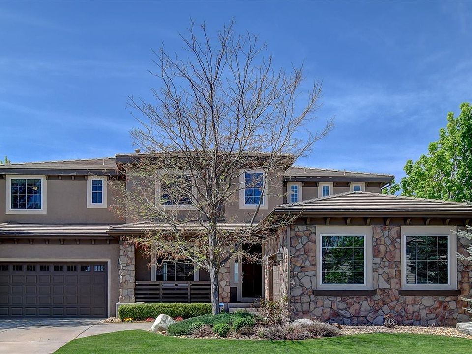 Come experience the Colorado lifestyle in this spacious and updated 6 bed, 6 bath home in the Highlands Ranch Golf Club neighborhood! Entertainer's ideal configuration features kitchen with massive slab granite island, expansive buffet, butler's pantry, and stainless-steel appliances. Vaulted family room showcasing gorgeous mountain and open space views outside the upgraded windows. Formal dining room and living room. Pocket office, laundry room, powder bath, and main floor bedroom with attached full bath complete the main floor. Upstairs master suite features two walk in closets with built in organization and ensuite 5 piece bath. Three additional bedrooms and two perfectly updated full baths. The finished walkout basement where space abounds includes additional bedroom, full bathroom, family room, recreation area, and storage. Private backyard is a true gem with beautiful flat yard, sports court, covered patio, massive deck with dry below system, and backs to open area with views overlooking the High Line Canal and golf course. This home has 2 newer furnaces, 2 newer AC units, 2 newer 40 gallon water heaters, newer windows with extra coating. Too many details to list - MUST EXPERIENCE FOR YOURSELF!