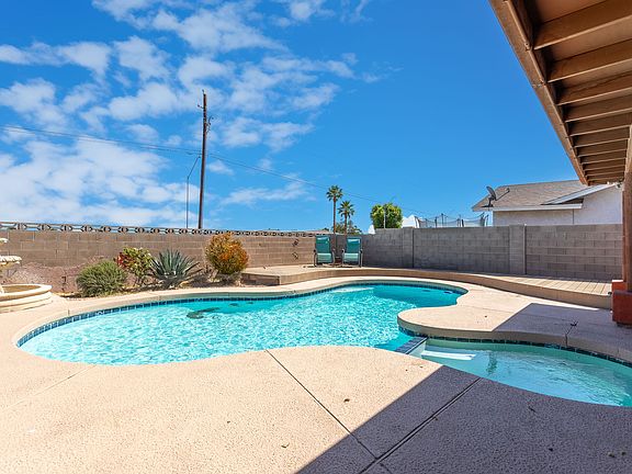 This beautiful pool home features 3 bedrooms plus office/den, and multiple living spaces including a formal living room and a welcoming family room. The backyard is an entertainer's dream, complete with a sparkling pool and spa (spa heater replaced in 2024) a large grassy area, and an extended covered patio perfect for dining, lounging, or play. Inside, you'll find a dedicated well-designed layout that balances privacy with open gathering spaces. The garage is equipped with a mini-split A/C unit, ideal for a home gym, workshop, or hobby space. Solar panels help keep energy costs down. Renters pay for utilities
