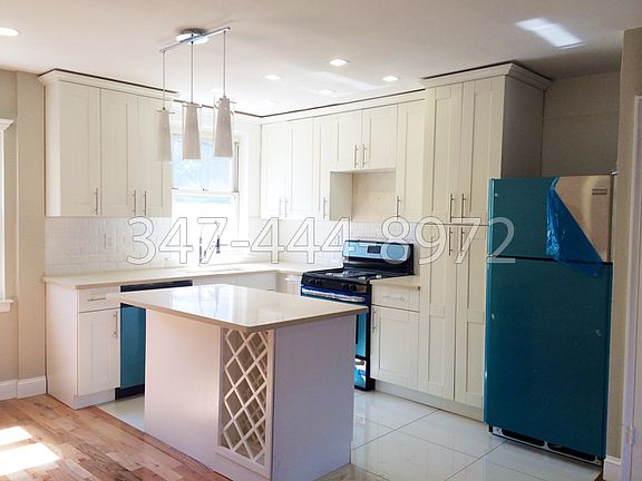 Call owner 347-444-8972. Spacious 1 family house fully renovated. 100% brick attached 3 bedroom 2 full bath with open plan layout. Gorgeous custom kitchen with quartz counters, huge island and stainless steel appliances. Marble bathrooms with jacuzzi jet showers. Finished studio basement apt on the ground level, 2 car driveway, 1 car garage and large backyard.