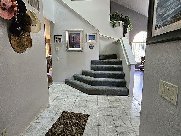 Lovely cul-de-sac home. Features include 4 bedrooms and 2 1/2 bath, living room dining room combination, family room open to kitchen, and breakfast nook. Many upgrades. Solar system (19 panels) is large enough that seller gets rebate at end of year. Seller will be paying off solar in escrow. Front and back yards are fully landscaped. Large patio across the back of the house. Lovely little patio in the front courtyard. 3 car garage has built-ins and door to house and back yard. You'll enjoy this home.