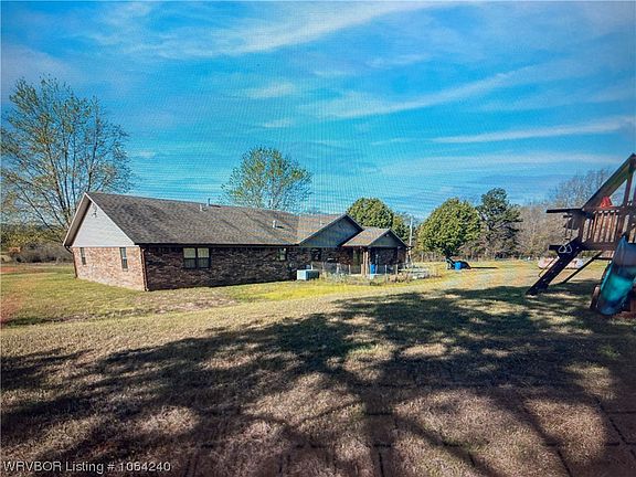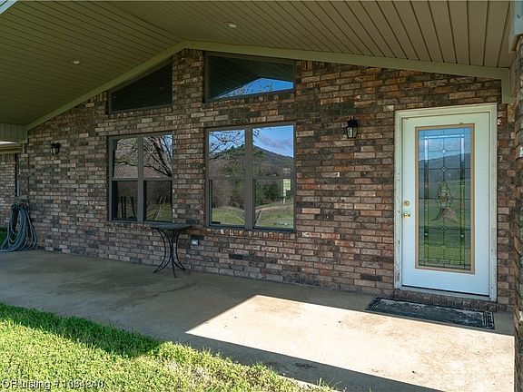 This 3 bed, 2 bath, south facing, brick home and 57 acres has an amazing view of blue mountain. It’s could be a place for a home stead and/or business opportunity! This property has so much to offer and a ton of potential. The home offers a 2 car attached garage, large laundry room with sink, a walk-in closet in the master bedroom that doubles as a safe room, built-in office space and vaulted ceilings in the living room as well as a spacious kitchen. The land offers roughly 20 acres cleared in the front with 3 ponds, fenced and crossed fenced with electric fence, 7 large green houses, a barn, chicken coop and garden area ready to be worked! The remaining timber land is filled with pine and hardwoods trees, a few natural springs, potential amazing view spots at a higher elevation and is ideal habitat for many animals in the region such as whitetail deer, wild turkey, and an assortment of smaller game. This property also offers a small cabin with full kitchen, full bathroom 1 bedroom an 2 loft areas for potential income. This property is located only 20 min from Heavener, 30 min to Poteau, OK, and 1 hr from Ft Smith, AR.