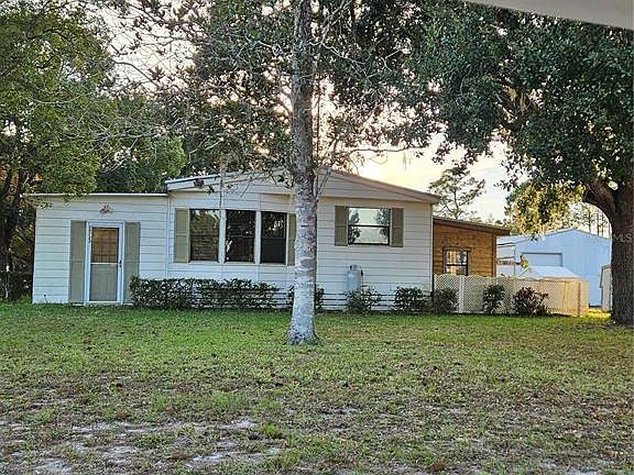 Under contract-accepting backup offers. This is a property that you must see. It boasts a spring fed creek nestled amongst pine trees that filters into a small private pond on the far side of the property. This quiet area would be wonder for those days of relaxation or those times to host a party with friends and family. No HOA fees here. Walk into the screened in porch which leads to a spacious extra room where you can find the washer and dryer. With a few steps enter into the large open split floor plan living/kitchen area. The home is 1508 sqft with 3 bedrooms and 2 bathrooms. The flooring was upgraded in the living room area with real wood. The screen porch and spacious extra room both were upgraded to tile. Host parties outside around your above ground pool that was lowered into the ground for easy access. For the handyman, it has a workshop large enough to accommodate two semi-trailers with separate bay doors. For the active outdoors, enjoy Clearwater Lake Recreation Area, the Seminole State Forest trail network, Raptor Airsoft Center, and much more only 10 minutes away. Plus, all the shopping and restaurants in the city of Deland only a short drive away.