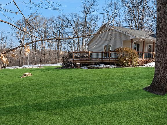 You will feel complete serenity when you arrive at this custom-built home on 5 acres, mostly wooded with spring feed creek(Battle Brook) and protected wetlands running behind it. An abundance of privacy, wildlife, trails, and a wrap-around deck. Organic gardens and fruit trees. 60x48 gravel pad for you to build a future pole shed. Cambria quartz kitchen countertops, quartz sink with custom oak cabinets, and ss appliances. Vaulted ceilings on the main floor. Sitting room/office and main floor laundry. Three bedrooms on the lower level. In-floor heat in the finished part of the basement. Framed 414 unfinished sq ft for you to turn into a rec/exercise room. Extra deep/wide three-stall garage. Come and see this meticulously maintained home at the end of a cul-de-sac.