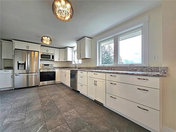 This UPDATED 4 bed 2 full bath home rests on a BEAUTIFUL & PRIVATE near 1.5 acre lot in Sewickley Township!! Within walking distance of Indian Lake Park, this home has a country setting w/plenty of yard space, yet is minutes from major roads and amenities. Enter through the convenient attached garage, to a GORGEOUS eat-in kitchen w/granite countertops, soft-close cabinets, a disposal, ceramic tile floors, & BRAND NEW stainless LG appliances – all INCLUDED!! The main floor boasts timeless oak HARDWOOD flooring throughout, all new windows, doors, and trim! Enjoy the sunset from the oversized living room window. The lower level features a family room w/a COZY brick fireplace, laundry room, bedroom/office, additional room, ample storage space, and Lifeproof flooring! A new concrete sidewalk borders tasteful easy-to-maintain landscaping. The tree lined backyard would be excellent for children, pets, or hobbies! This home is move-in-ready and checks all the boxes!!