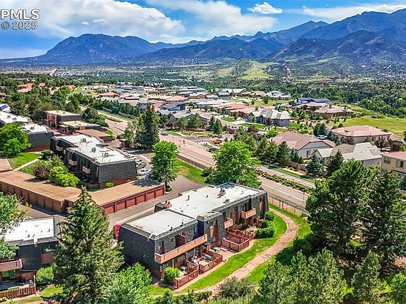 One of the Best locations in one of the best cities, with views from your balcony of Pikes Peak & Kissing Camels & Garden of the Gods! This 2 bed, 2 bath, 1 car garage Condo is in a gated community and is very nicely updated with modern finishes throughout. The kitchen has updated Scandinavian cabinets, Quartz counters, large single bowl under-mount sink, tiled back splash, and under cabinet lighting. Custom doors on the pantry and master closest and bath. Luxury vinyl plank throughout most of the main level, and modern tile in master bath. The Living room has a woodburning fireplace that is very modern & clean with wood mantle that matches the exposed beam. Newer vinyl Windows and Sliding Door. South facing Living room and master bed allows the light to fill the rooms most of the day. You'll love the west side and easy access to one of the premier destinations in Colorado Springs with Garden of the Gods so close by. Maintenance free living, owner pays only for electric outside of the HOA. Don't let the higher HOA fees scare you, it has Very Low Taxes and Priced to help offset part of an added on temporary monthly HOA fee and yearly assessment that is paid off end of 2029 that goes toward the exterior roof & stucco renovation done spring of 2024. About a quarter of the HOA goes toward utilities that pays for Water, Sewer, & Gas/Heat. The other three quarters of the HOA pays for Trash & Snow removal, Grounds/Landscape maintenance, Exterior Insurance & maintenance, Management, and Furnace/Water heater/Air conditioner repair or replacement as needed, ask for more details. Back on market due to buyer funding. Come see this beautiful property today!