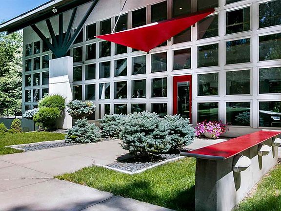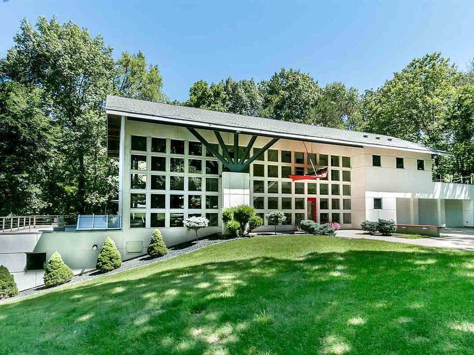 MODERN SANCTUARY, tucked away within lovely forested acreage. This architecturally designed home offers expansive windows w/ spectacular views, soaring 20' ceilings, maple flooring, moveable curved metal wall creating subtle privacy & cantilevered glass, chrome & maple stairway. Great entertaining home w/ dramatic living & dining areas; gourmet kitchen/great room w/ access to outdoor kitchen patio w/ gas frpl, grill & screen porch. Second level bedrooms w/ private baths, walk-in closets & intimate decks.