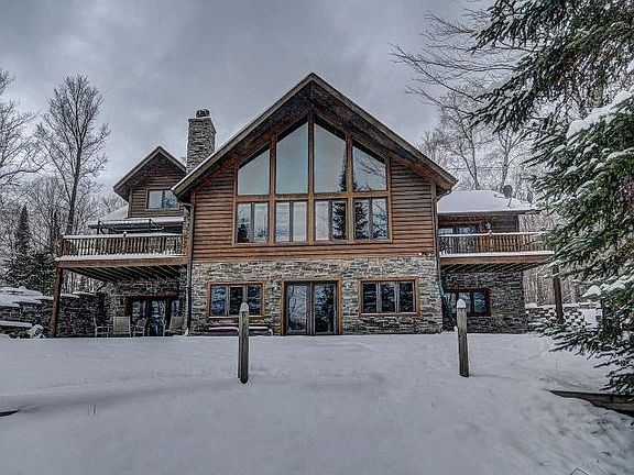 Here's a luxury Chalet that's made for entertaining in style. You and your guests will love the great room design with plenty of windows, high wood ceilings and a stone fireplace. The home features 3 bedrooms, 3.5 baths, a finished lower level, and a loft - all top quality throughout. The main floor master has a fine lake view and a bath with freestanding tub and walk-in shower. Other amenities include: 250 ft of sandy frontage with island view, a wine cellar, main floor laundry, and a kitchen/dining area with granite counter tops, high-end appliances, and hardwood floors. The huge walkout family room has a wet bar, fireplace and adjoins the separate hot tub/sauna room. A 38x40 insulated garage will hold the toys. Perfect! Just 15 minutes north of Eagle River, Pine Island Lake is a quiet 71 acre lake, 21 ft deep, with Musky, Bass, and Walleye. And the Pine Island Association includes an owner's share in 400 wooded acres of wildlife reserve with private trails for you to roam.