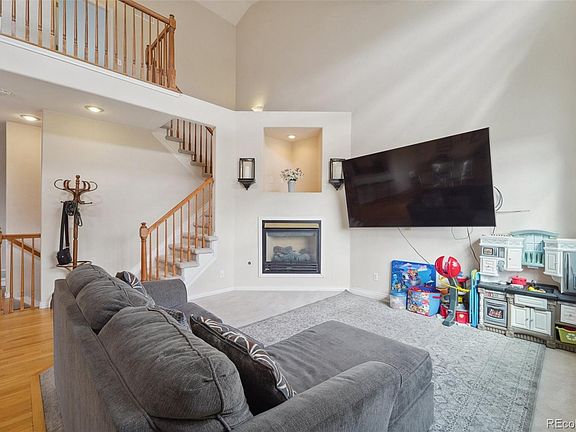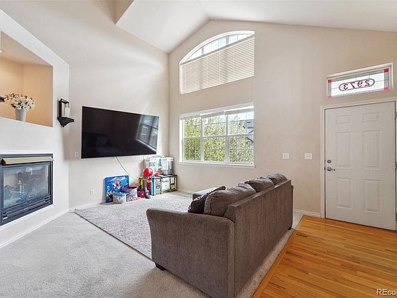 Beautiful move-in-ready spacious townhouse with 3 bedrooms, 4 bathrooms and a 2-car attached garage plus additional public parking for guests along Waco St. Kitchen with plenty of cabinetry and cozy bar countertop. Wood floors in the kitchen and dining area, laminated floors in the basement and carpet in living room and upper floor bedrooms. The living room offers a wonderful place to relax with tall, vaulted ceilings and large windows allowing for lots of natural light. There is also a rear patio which is a great place for gatherings or summer BBQs. All appliances stay including the washer and dryer as well as acentral a/c. Property is close to stores, dining, the Toll Gate Creek Trail and movie theater including easy access to DIA via E-470.