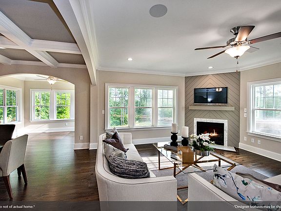 Welcome to Kitchin Farms and this beautiful Warwick. Four bedroom home with a three-car garage. Greet your guests with a grand two-story foyer. Gourmet kitchen with double islands, staggered crown trimmed cabinets, tile backsplash and a corner walk-in pantry. Butler's pantry with glass front cabinets. Dining with coffered ceiling opens to the spacious family room featuring a gas log fireplace. First floor flex room is perfect for a home office or cozy living room with French doors giving you quick access to the kitchen. Private primary suite with a spa-like master bath boasts dual vanities, tiled walk-in shower, and separate garden tub. Bedrooms two and three share desirable jack-and-jill bath, each with private vanities. There is also a second full bath adjacent to bedroom four. Large open bonus room for gaming or family movie nights. Enjoy the views from your sunroom or deck overlooking a gorgeous back yard.