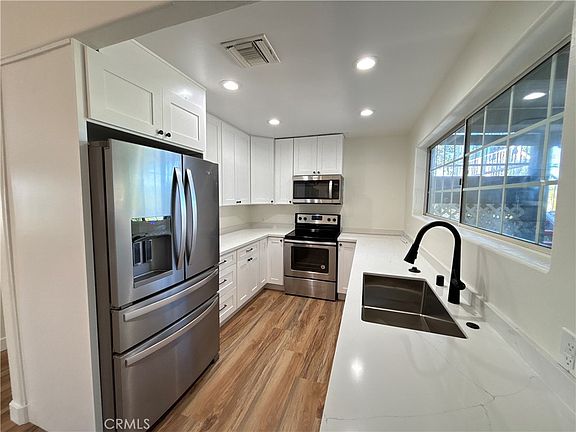 Completely Remodeled Corner Lot Home with Main Lake View from the upstairs deck and 2nd bedroom. Open floorplan with living room, family room with fireplace, and dining room all with vaulted ceilings. Brand new kitchen with white soft close cabinetry and solid countertops, and stainless steel appliances. Huge Primary Suite on main level with vaulted ceilings new slider leading to the backyard, walk-in closet + an additional closet and brand new bath with a very large walk-in custom tiled shower and free standing tub, and dual sink vanity. 2 Bedrooms upstairs, 1 is extra large with a walk-in closet and a new slider to it's own Juliet Balcony. The 2nd bedroom features lake views, vaulted ceilings with a new slider to the large balcony. Brand new bath with custom tiled walk-in shower and large vanity plus linen closet. Separate indoor laundry room and storage room that could be used as a walk-in vanity or small office. The backyard offers a covered trellis, brand new landscaping including artificial turf, rocks, and bark plus pomegranate trees and lots of trees & shrubbery. 2 car garage with storage and brand new garage doors. Tons of upgrades including; new flooring, new kitchen, new baths, new faucets, fixtures, hardware, garage doors, lighting, and landscaping! An Absolute Gem!