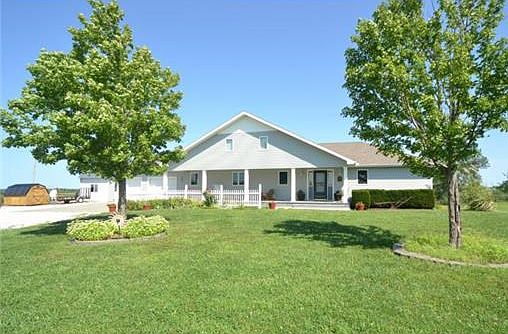 Peaceful country Living at it's BEST!! Spacious open concept Reverse Story 1/2 home sitting on 33 acres m/l. Detached garage w/metal roof. Scenic view of pond & acreage from full length deck on back of home. Home sits back off paved highway, w/winding tree lined driveway. Front covered porch gives a warm greeting to all that enter and a place for family/friends to meet/socialize. Large rooms through out home which has been meticulously maintained.