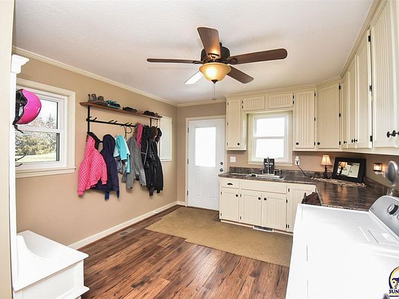 Your COUNTRY ESCAPE awaits! Remodeled kitchen w/peninsula, island w/range, Quartz countertops & custom Beach Woodcrafters cabinets. Massive laundry center equipped w/ plenty of counter space & custom cabinetry! Abundance of natural daylight! Wrap around deck to take in the panoramic countryside. Two car detached garage, 60X32 equipment shed & 60X18 calving shed & established corrals! 1/2 mile of gravel & 1 mile from Netawaka's fitness & aquatic center all in close proximity to highway 75 access.