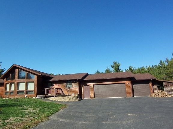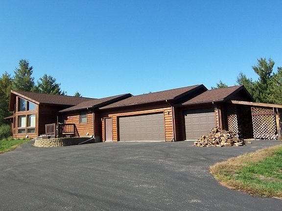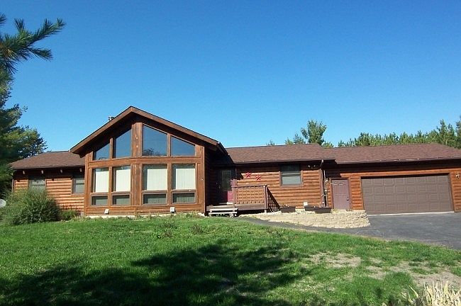 Log Home Lovers Special. Large open floor plan with lovely huge master bedroom on one side and the two guest bedrooms on the other. Peace and privacy, yet not too far away if needed! Full finished walkout lower level has its own kitchen, plus 2 more bedrooms. Large family recreation room for all kinds of fun, movies or just hanging out. Great entertainment area. An attached 3 plus car garage and the 24 by 26 foot detached heated garage workshop for everything else.