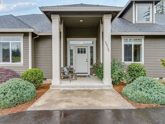 This spectacular custom home gives you the option for multigenerational living with a separate 1 bed/1bath living quarters, or the home functions perfectly as a 5 bedroom 3.5 bath residence. 3,250 square feet of finished living area situated on two landscaped acres giving you both space and privacy. High end features include quartz countertops, gas cooking, stainless appliances, extensive wood flooring, quality cabinetry, exquisite primary suite, and spacious bonus/flex room! The expansive upper level bonus room is perfect for work, school, hobbies, or games. New carpet throughout, amazing maple hardwood floors from reclaimed barn wood in the great room, entry and hallway. Light and bright chef's style kitchen with a large island and pantry. The home is complete with a cozy gas and stone faced fireplace. Oversized primary bedroom and bathroom with dual shower heads and a relaxing free standing soaking tub! Large picture windows in every room capture the nature that surrounds you. Beautifully landscaped with a circular driveway, and an oversized two car garage with additional RV parking area. Adequate room available to build a large shop or private aircraft hangar. Your options are endless on this private lot situated in the prestigious Valley View Airport community. A truly tranquil lifestyle property located with just a short drive to Portland urban center and Mt Hood recreation area. This is a rare opportunity to have your own slice of paradise!