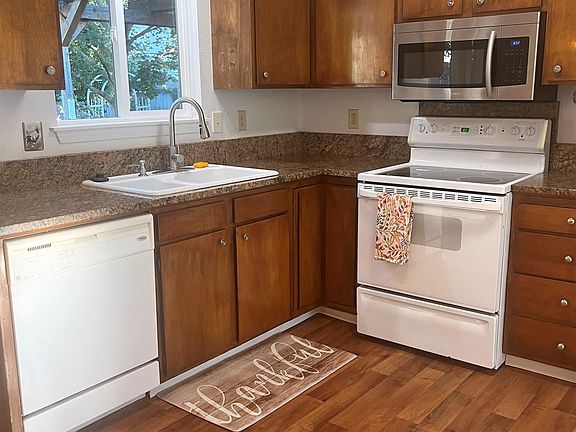Clean home for immediate occupancy. Great backyard space. Nice large living room with laminate flooring. Small RV parking, roll-up door storage shed with nice big trees for shade and privacy. Large wood deck. Just around the corner from Redwood Park and 4 minutes to The Village and 2 minutes to closest grocery and other small businesses. Central HVAC & water heater that is newer along with the windows & blinds. Water is paid for and someone comes and mows the lawn each week. Perfect place to call home. Owner pays for water, sewer, trash and has someone mow each week. Tenant is responsible for other utilities which includes internet, gas and power. One car garage for parking. Washer, dishwasher, microwave, stove and refrigerator in unit. Dog door from eating area to backyard for small to medium sized dog into a private backyard with lots of shade and a large back deck. There is parking in driveway and street parking is also available. $300.00 non-refundable pet deposit. NON-SMOKERS