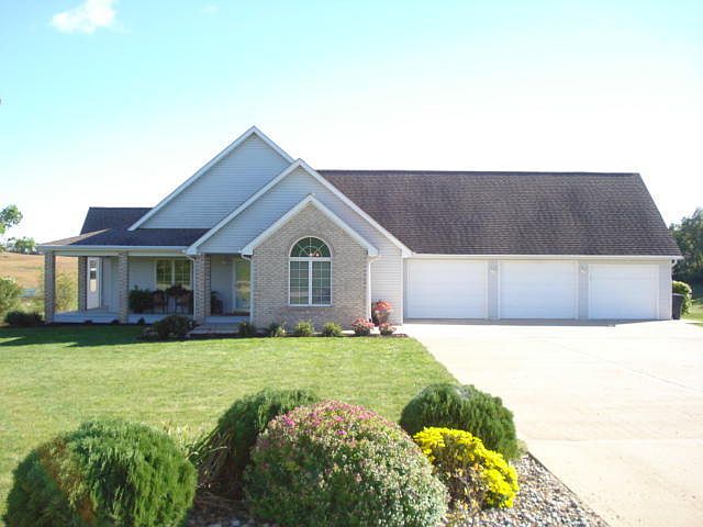 Sit back and enjoy the view from the deck that overlooks the golf course! This is a very well maintained home inside & out with professionally landscaped yard and updates to the kitchen, baths and main level flooring. There is a walk-out basement w/family room, game room, bedroom, bath & storage. The 3 car garage is 1,000 sq.ft of man cave space!! This is a must see ranch just outside of town.