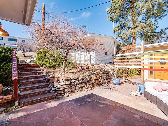 Gorgeous single level modern home with canyon views in North Community neighborhood! Private front curb appeal with a fence sheltering you from the street and your two designated parking spots you walk down stairs to your front flag stoned courtyard. The moment you step into the front entrance you're welcomed by charm and warmth with a bright Mud/Sunroom with a wall of windows, wood paneled walls, skylights and brick flooring. Beyond the entrance is the Laundry Room with the same aesthetics and access to the side yard. Through a set of French doors you walk into the main Living area of a large open Dining Room and Kitchen with tile and wood flooring. Beautiful custom Kitchen with one of a kind wood cabinets, tile counters, stainless steel appliances, a center island, upper shelves instead of cabinets giving the space a designer feel that you'll want to cook in. Large Living Room with a stone wood burning fireplace, wood flooring, great natural lighting from the windows and doors leading to the backyard. There's two nice sized guest bedrooms with wood flooring, a spacious Primary Bedroom with two storage closets and wood floors. A bright full Bathroom with tile shower/tub and pedestal sink, and linen closet. This home boasts a Huge Backyard on a canyon with an impressively large wood deck that wraps to the side yard making this the optimal outdoor living space and entertainers dream. Don't sleep on this one of a kind stunning home, book your tour today!