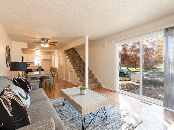 Why rent when you can own your own home! Check out this well-maintained affordable condo with LOW SPECIALS. This 2 bedroom, 2 bathroom home is ready for a new owner with no changes needed. The main level includes kitchen with white cabinets, brand-new stainless steel appliances, dining, living room, desk nook and 1/2 bathroom. Upstairs you will find 2 bedrooms, a full bathroom with washer and dryer included. There is also a 1-stall garage. Other updates include brand new siding (2022), new roof (2020) and newer windows throughout.
