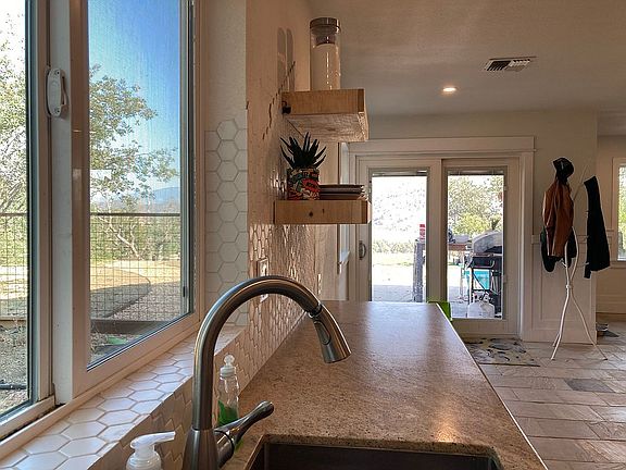 Location is wonderful! Amazing views throughout the home, but just one street from the lower valley in Bear Valley Springs. Backyard is great for entertaining. Large oak trees trimmed last year. On natural gas and septic (no sewage fees) 3 bedroom 2 bath plus office (perfect for homeschooling.) 2 car garage, tons of RV parking. Home is almost NEW. New natural tile flooring, roof, kitchen, granite, appliances, windows, slider doors with blinds, carpet, garage doors, rain gutters with screens, spare bathroom. Additional 10x15 finished shed with electricity and viewing deck. Has pad and electrical for backyard Hot Tub. Fenced dog run. Two water heaters. Home has central AC/ heat. Grass can be mowed with riding lawnmower (not steep) .
